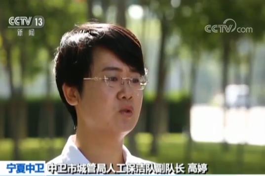 中衛(wèi)市城管局人工保潔隊(duì)副隊(duì)長(zhǎng) 高婷:我們的環(huán)衛(wèi)工人跟其它地方比,從外觀上來(lái)看就不一樣,他們每天騎電動(dòng)保潔車(chē)上班,每個(gè)人還配發(fā)了“環(huán)衛(wèi)云”終端設(shè)備,我們的道路塵土主要是靠機(jī)械清掃,環(huán)衛(wèi)工人主要負(fù)責(zé)的是撿拾垃圾。