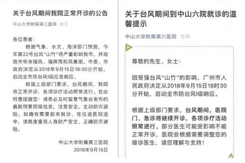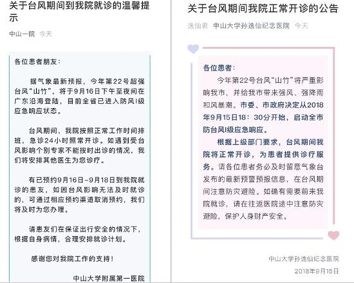 ▲各大醫(yī)院發(fā)布通知,臺風(fēng)期間正常上班、照常開診。