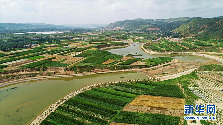 經(jīng)過治理后的寧夏固原市西吉縣葫蘆河(8月8日無人機拍攝)。新華社記者王鵬攝