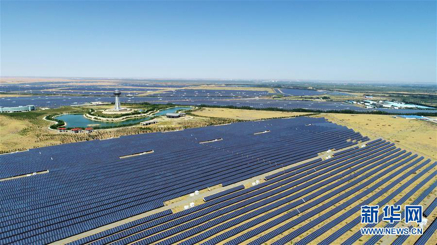 寧夏中衛(wèi)市沙漠光伏產(chǎn)業(yè)園光伏電站(9月7日無人機拍攝)。? 新華社記者王鵬攝
