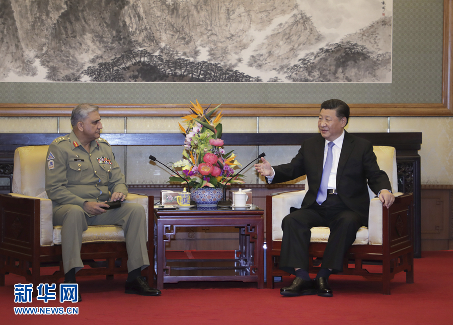 9月19日,國(guó)家主席習(xí)近平在北京會(huì)見巴基斯坦陸軍參謀長(zhǎng)巴杰瓦。 新華社記者 李剛 攝