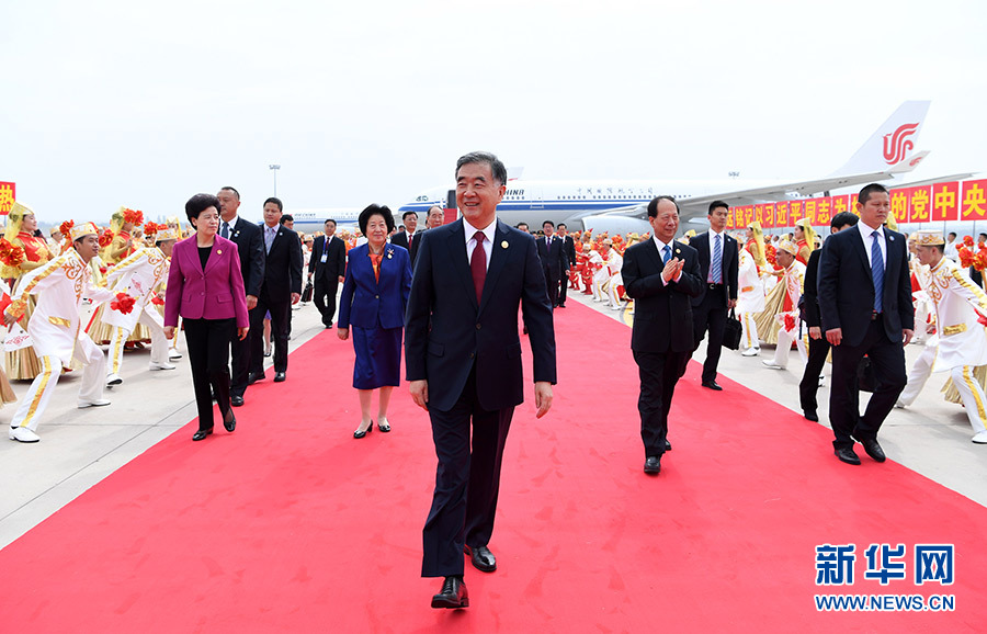 9月19日,以中共中央政治局常委、全國(guó)政協(xié)主席汪洋為團(tuán)長(zhǎng)的中央代表團(tuán)飛抵銀川,出席寧夏回族自治區(qū)成立60周年慶祝活動(dòng)。中央代表團(tuán)在機(jī)場(chǎng)受到寧夏各族群眾的熱烈歡迎。 新華社記者 張領(lǐng) 攝