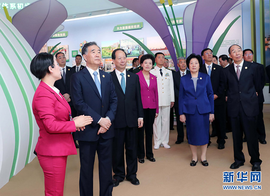 9月19日,中共中央政治局常委、全國政協(xié)主席、中央代表團(tuán)團(tuán)長汪洋率代表團(tuán)全體成員來到寧夏回族自治區(qū)銀川國際會展中心,參觀《建設(shè)美麗新寧夏 共圓偉大中國夢——寧夏回族自治區(qū)成立60周年大型成就展》。 新華社記者 劉衛(wèi)兵 攝