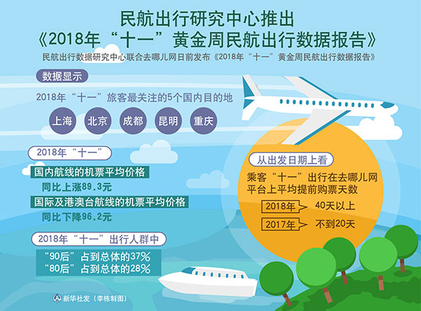 圖表:民航出行研究中心推出《2018年“十一”黃金周民航出行數(shù)據(jù)報(bào)告》 新華社發(fā) 李棟 制圖