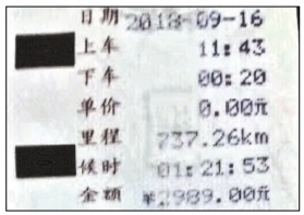 王珂前往長(zhǎng)沙的出租車(chē)票