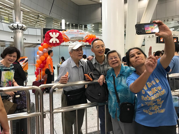 香港西九龍站, 80多歲家住深圳的黃奶奶送老伴和兒子去香港會(huì)見老朋友,“他們很多小時(shí)候的同學(xué)在香港,多年沒見了,今天通了高鐵,十幾分鐘就過來了?!?/p>
