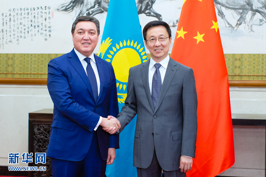 韓正表示,在兩國元首戰(zhàn)略引領(lǐng)下,中哈關(guān)系保持高水平運行,共建“一帶一路”合作成果豐碩。今年6月,兩國元首再次會晤,對兩國關(guān)系發(fā)展作出新的規(guī)劃和部署。雙方要全面落實兩國領(lǐng)導(dǎo)人重要共識,進一步加強發(fā)展戰(zhàn)略對接,深化產(chǎn)能、投資、經(jīng)貿(mào)、財金、能源、互聯(lián)互通等各領(lǐng)域合作,推動中哈全面戰(zhàn)略伙伴關(guān)系不斷邁上新臺階。