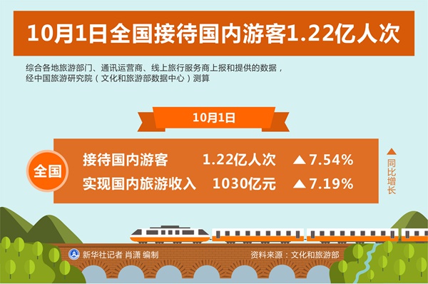 圖表:10月1日全國(guó)接待國(guó)內(nèi)游客1.22億人次 新華社記者 肖瀟 編制