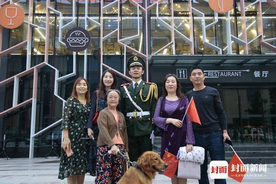 昨天(9月30日)晚上,楊婷和家人及男友父母從老家驅(qū)車趕到了成都,一大早就守候在了天府廣場?!靶那榉浅<樱?yàn)樗亲o(hù)旗手,我也感到很驕傲。”