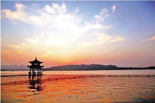 汪老師拍攝的西湖落日,讓人驚艷。