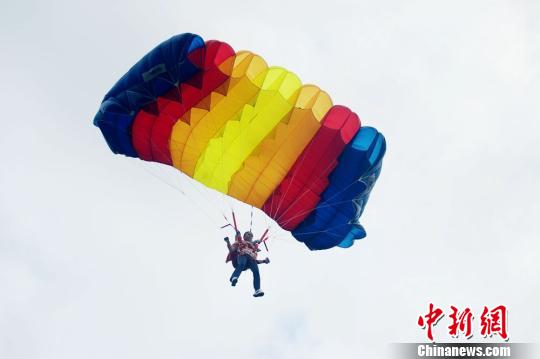 10月1日,石春艷和另兩名國(guó)家隊(duì)跳傘運(yùn)動(dòng)員在黃龍洞1500米高空同時(shí)攜帶五星紅旗進(jìn)行了跳傘表演,共同祝福祖國(guó)繁榮昌盛。(通訊員 鄧道理 李遠(yuǎn)明)