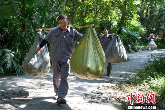 “十一”黃金周,廣大市民游客紛紛開啟休假模式,而環(huán)衛(wèi)工人依然堅(jiān)守崗位。在南京中山陵的藍(lán)瓦白墻下,流動(dòng)著這樣一群身影,他們穿著藏藍(lán)色工作服,手拿保潔工具,彎著腰,低著頭工作著,全心全力地保障景區(qū)的衛(wèi)生環(huán)境。徐道海、陳紅霞就是其中的兩位,據(jù)了解,他們?cè)阽娚斤L(fēng)景區(qū)服務(wù)了近20年,每天的工作就是將祭堂外的垃圾清運(yùn)至山下的垃圾中轉(zhuǎn)站去。他們每天在392級(jí)臺(tái)階上往返15趟。一位年輕游客說,“這兩位師傅真是了不起,看到他們,我們哪好意思再亂扔垃圾呀!”徐道海師傅憨憨的笑著說:“我在景區(qū)工作20年了,把景區(qū)當(dāng)做我的家,不管再苦再累,我也要將景區(qū)打掃干凈,這不僅是給游客留下一個(gè)好印象,也是對(duì)先人的敬仰和尊重?!?/p>