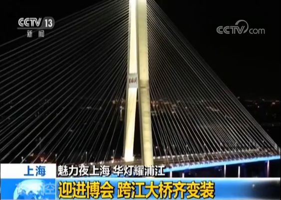 國慶期間,黃浦江上四座跨江大橋集體換裝,在江面之上營造出流光溢彩的節(jié)日氛圍。