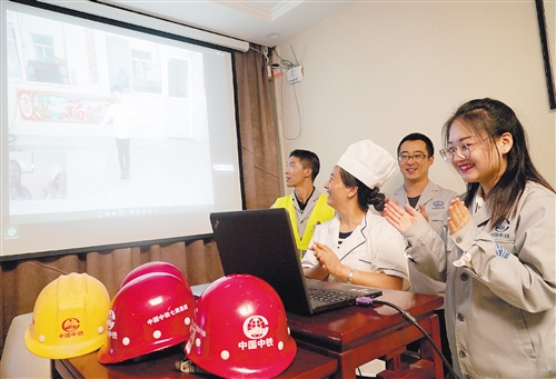 10月4日,正在建設(shè)中的北京地鐵19號線牡丹園車站,中鐵七局職工通過視頻投影設(shè)備和親人連線交流。國慶假期,許多建設(shè)者堅(jiān)守崗位無法與家人團(tuán)聚,項(xiàng)目部為他們開通親情連線,利用微信、在線視頻等多種通訊工具讓他們和遠(yuǎn)在外地的親人視頻通話。經(jīng)濟(jì)日報(bào)記者 趙 晶攝