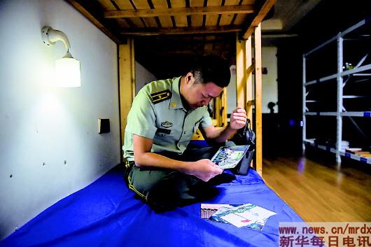 2018年8月7日,王志國在宿舍里看著與家人的合影回憶往事。