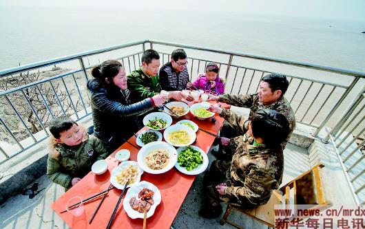 2015年2月13日,王志國(左三)和姐姐一家在開山島上和父母團聚。