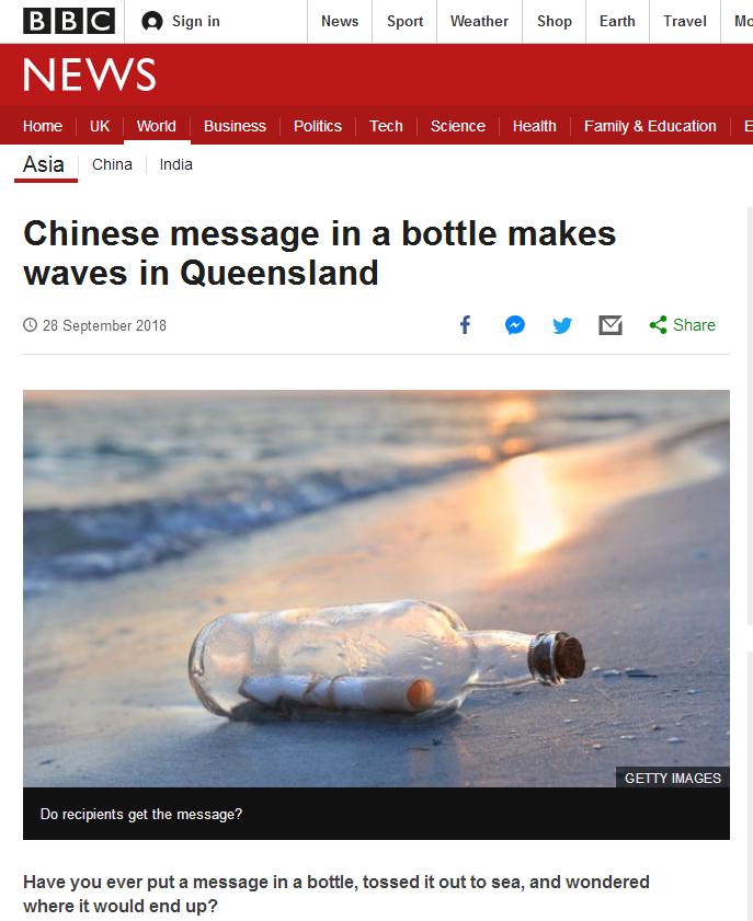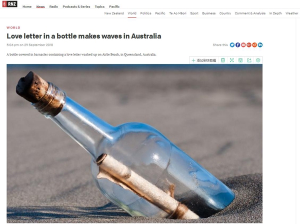 9月29日,新西蘭廣播電臺(RNZ)轉載了英國廣播公司的這篇報道,稱中國海員的這封情書已經(jīng)在澳大利亞引起轟動。