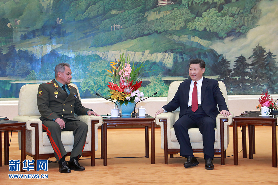 10月19日,國(guó)家主席習(xí)近平在北京人民大會(huì)堂會(huì)見(jiàn)來(lái)訪的俄羅斯國(guó)防部長(zhǎng)紹伊古。新華社記者 李剛 攝