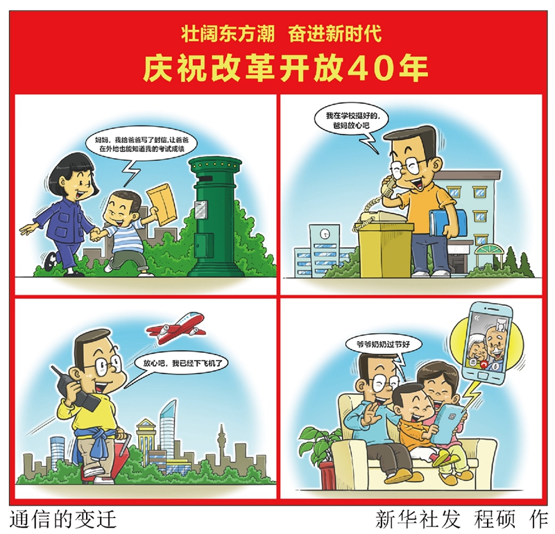 通信:以前,我們靠寫信,讓爸媽在外地也能知道我們的考試成績;后來,我們用座機(jī),告訴爸媽“我在學(xué)校挺好的”;再后來,我們無論出行到哪里,都可以隨時(shí)拿出手機(jī)跟家人說聲“放心吧”;如今,我們更加可以方便地打開手機(jī)視頻,問候爺爺奶奶“過節(jié)好”。↓↓