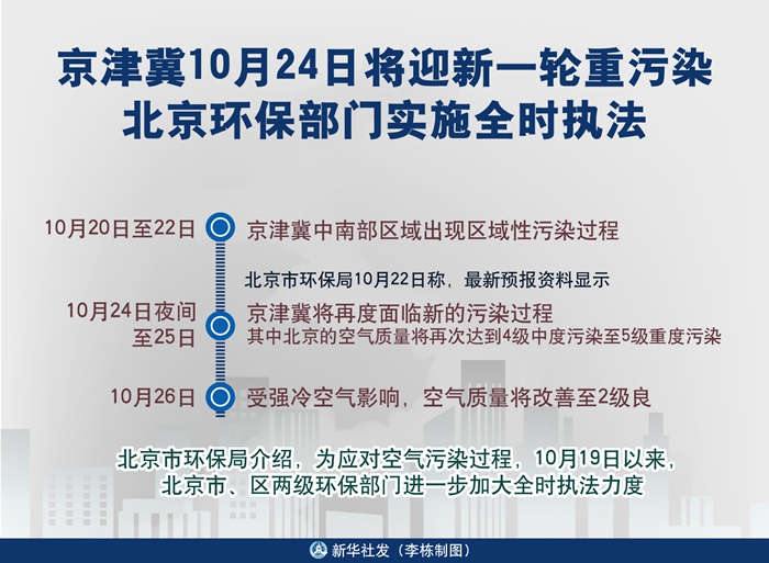 圖表:京津冀10月24日將迎新一輪重污染 北京環(huán)保部門實施全時執(zhí)法 新華社發(fā) 李棟 制圖