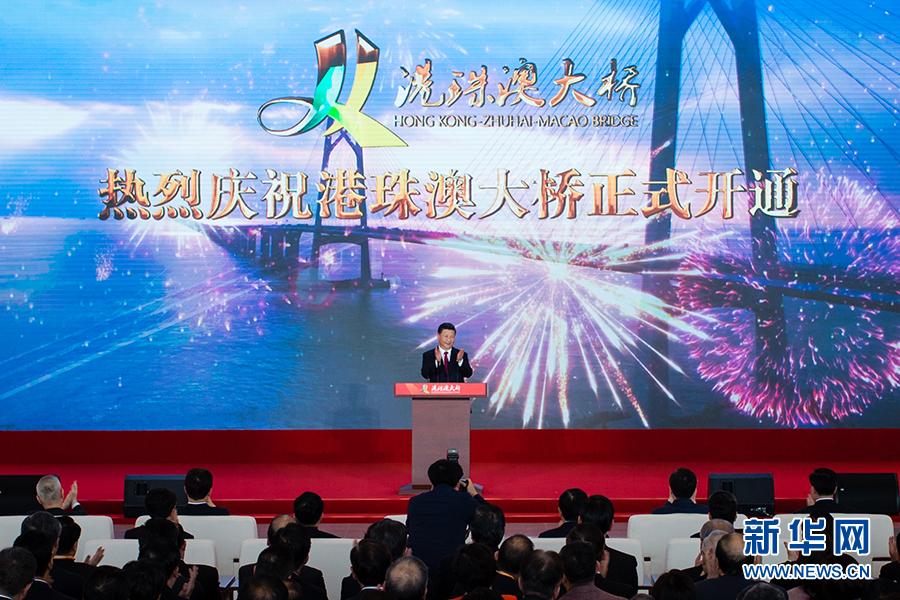 新華社珠海10月23日電(記者霍小光、張曉松、周強(qiáng))一橋連三地,天塹變通途。港珠澳大橋開通儀式23日上午在廣東省珠海市舉行。中共中央總書記、國(guó)家主席、中央軍委主席習(xí)近平出席儀式,宣布大橋正式開通并巡覽大橋,代表黨中央向參與大橋設(shè)計(jì)、建設(shè)、管理的廣大人員表示衷心的感謝、致以誠(chéng)摯的問(wèn)候。