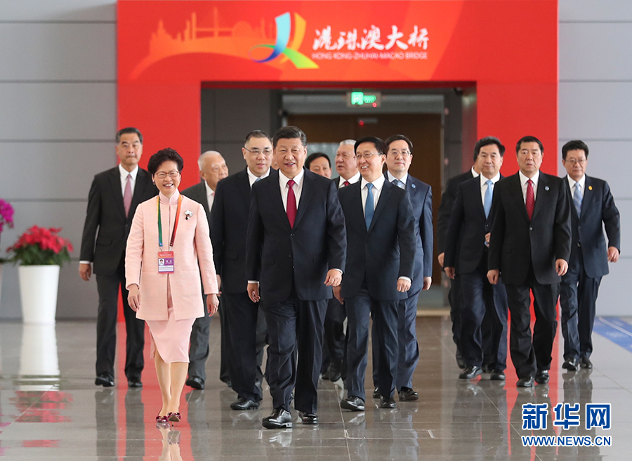 在觀看了反映大橋建設(shè)情況視頻后,中共中央政治局委員、廣東省委書記李希,香港特別行政區(qū)行政長(zhǎng)官林鄭月娥,澳門特別行政區(qū)行政長(zhǎng)官崔世安和韓正先后致辭。