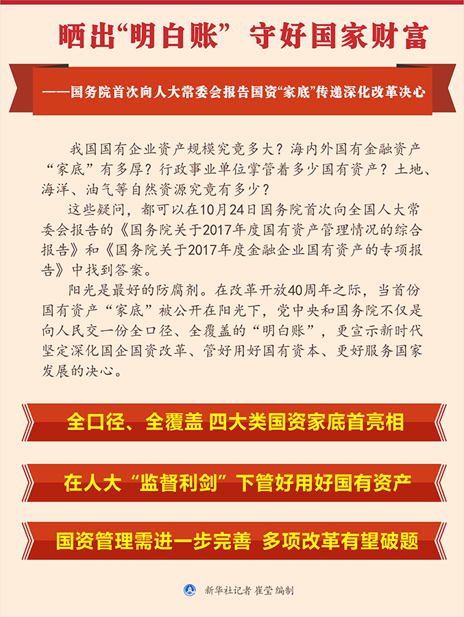 新華社北京10月24日電 題:曬出“明白賬” 守好國家財富——國務院首次向人大常委會報告國資“家底”傳遞深化改革決心