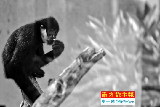27日,在廣州動物園,一只北白頰長臂猿在進(jìn)食。南都記者 黎湛均 攝