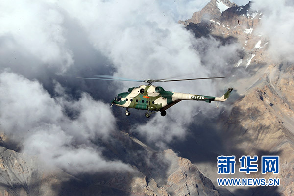 2016年7月20日,新疆軍區(qū)某陸航旅運輸直升機一營飛行員在高海拔邊防線執(zhí)行巡邏任務。新華社發(fā)(吳世科 攝)