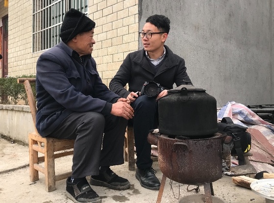 圖為2017年農歷臘月27,梁建強(右)在湖北崇陽走訪貧困戶。
