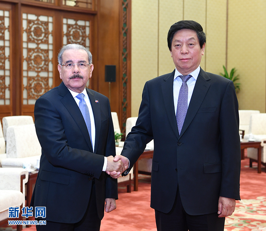 11月3日,全國(guó)人大常委會(huì)委員長(zhǎng)栗戰(zhàn)書在北京人民大會(huì)堂會(huì)見多米尼加總統(tǒng)梅迪納。新華社記者張領(lǐng)攝