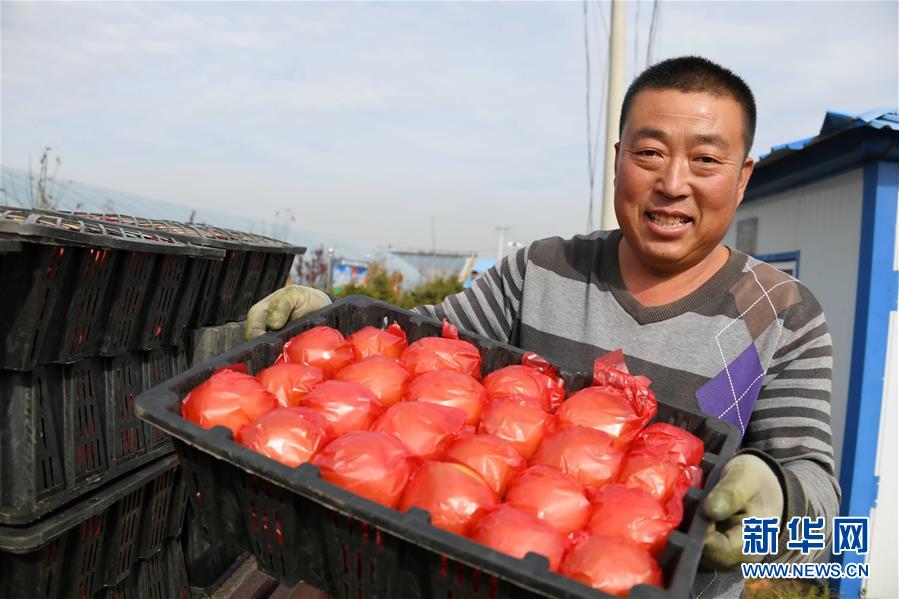 牡丹江海林市海林鎮(zhèn)蔬菜村村民黃翔展示即將出口俄羅斯的西紅柿(10月22日攝)。 新華社記者 王建威 攝