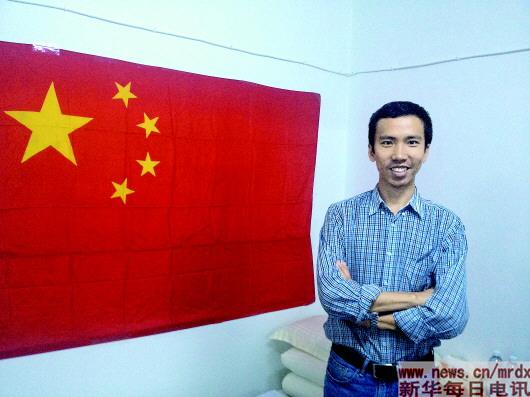 2015年3月空襲時(shí),劉萬(wàn)利在中國(guó)駐也門使館地下室與國(guó)旗合影。劉萬(wàn)利(國(guó)際部)