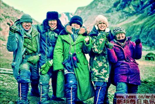 2017年12月,滕沐穎(右二)在新疆伊犁州結(jié)束十天“扎荒”準(zhǔn)備下山。滕沐穎(總編室)