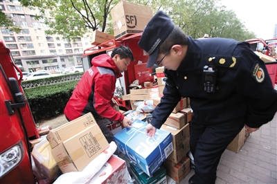 今年“雙十一”旺季壓力主要集中在收派環(huán)節(jié)。據(jù)市郵政管理局相關負責人介紹,在北京市“疏解整治促提升”和“減量發(fā)展”大背景下,北京已由快遞輸出城市轉變?yōu)檩斎氤鞘?,今年前九個月,進京量比出京量多出1.3億件,特別是中心城區(qū)的投遞業(yè)務占比持續(xù)上升,占全市比重的71%。隨著“雙十一”業(yè)務高峰來臨,將進一步增大北京市快遞末端的收派壓力。
