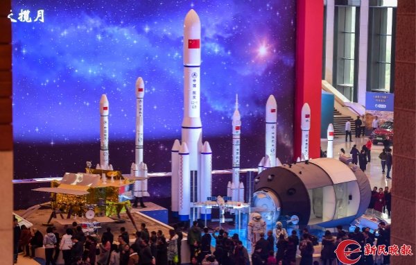 圖說(shuō):中國(guó)航天技術(shù)集中展示區(qū)域。新民晚報(bào)記者 孫中欽 攝