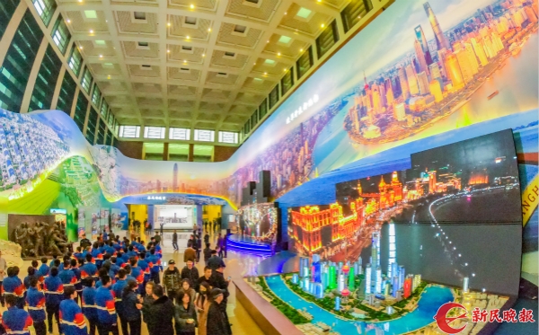 圖說(shuō):上海展區(qū)的視頻和沙盤(pán)展示著建設(shè)成就。新民晚報(bào)記者 孫中欽 攝