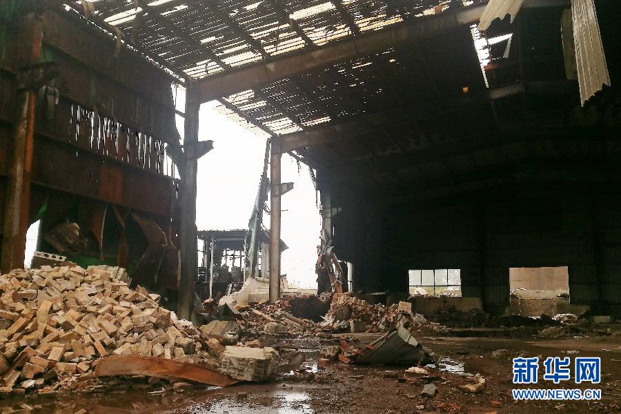這是江蘇省淮安市查處的一處非法鉛冶煉點的廠房內(nèi)部,地上散落著搭建土冶煉爐的防火磚(9月19日攝)。 新華社記者 朱國亮 攝