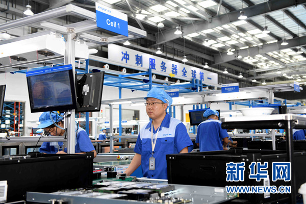 員工們在浪潮高端容錯計算機產(chǎn)業(yè)基地生產(chǎn)服務(wù)器(6月14日攝)。新華社記者 朱崢攝