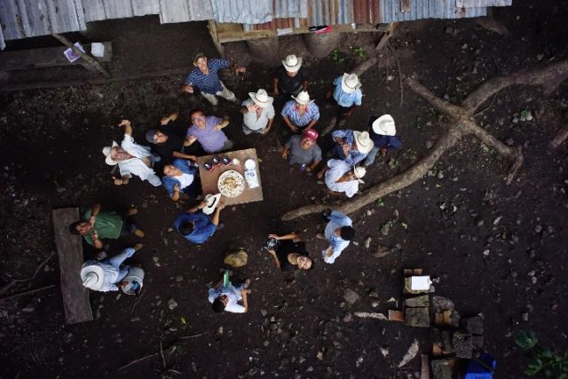 在科潘遺址的考古發(fā)掘間隙,中國(guó)考古學(xué)家和當(dāng)?shù)乜脊殴ぷ髡咴诹珠g空地歡聚小憩。(中國(guó)社科院考古所供圖)
