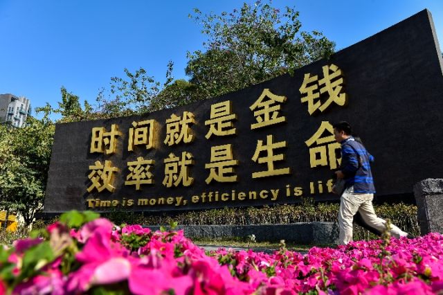 圖為“時間就是金錢,效率就是生命”紀念牌,目前位于廣東省自貿(mào)區(qū)深圳前海蛇口片區(qū)。新華社記者 毛思倩 攝