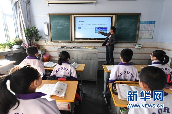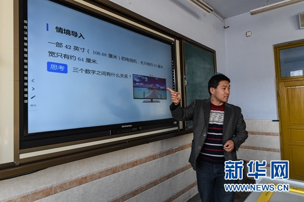 11月30日,在吉林省榆樹市五棵樹鎮(zhèn)中學,教師李玉虹利用多媒體教學系統(tǒng)給學生們上數(shù)學課。 新華社記者 張楠攝
