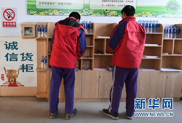 11月30日,在吉林省榆樹市五棵樹鎮(zhèn)中學,學生們在“誠信貨柜”選購商品。新華社記者 張楠攝