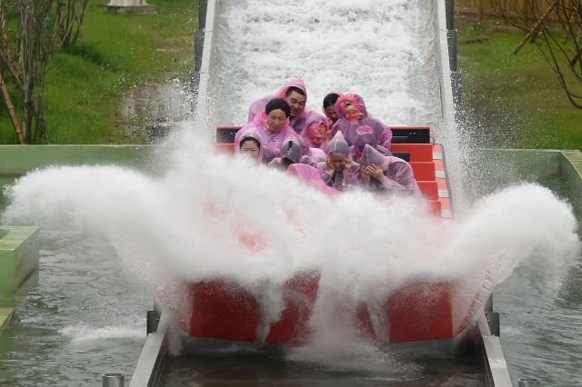 游客在浙江寧波中華復(fù)興文化園非物質(zhì)文化博覽園體驗游樂項目 ( 黃宗治/攝 )