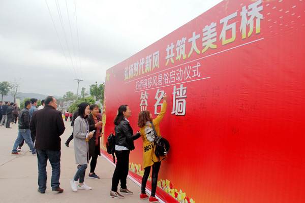 四川瀘縣石橋鎮(zhèn)舉辦移風(fēng)易俗活動,群眾在簽名墻上簽名承諾。(四川省瀘縣紀委監(jiān)委 吳威 供圖)