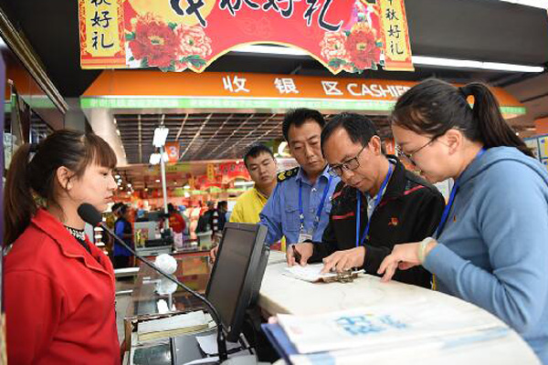 節(jié)日期間,云南省石林縣紀委監(jiān)委深入超市、賓館、酒店,檢查是否存在公款吃喝、公款購買月餅、公款旅游等問題(云南省石林縣紀委監(jiān)委 黃俊 供圖)