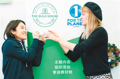 現(xiàn)在,這對(duì)小情侶在北京南鑼鼓巷開了一家名叫THE BULK HOUSE(零浪費(fèi)無包裝商店)的小店,繼續(xù)倡導(dǎo)“零浪費(fèi)”生活,用不銹鋼吸管代替塑料吸管,還把用過的米袋子舊物改造成時(shí)尚手包、背包,把舊布料做的衣服和枕套,用閑置紙盒郵寄快遞,受到了顧客歡迎。