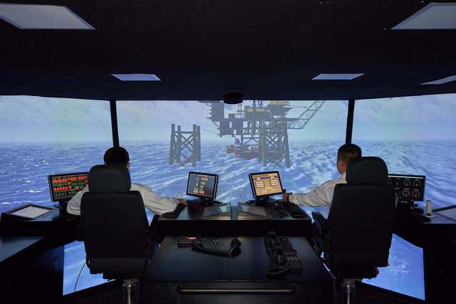 工作人員在執(zhí)行海上船舶航行模擬