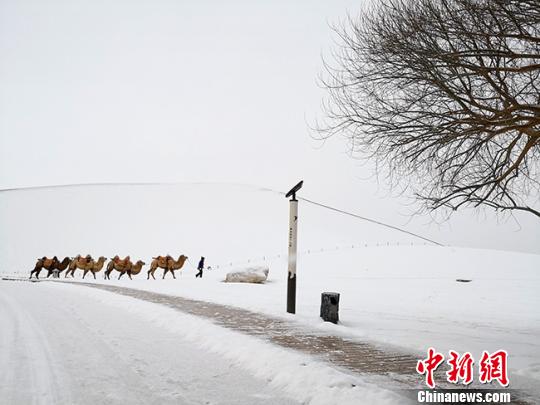 12月以來,素有“中國旱極”之稱的甘肅敦煌連迎兩場降雪,金黃色的鳴沙山被白雪覆蓋如“雪山”,月牙泉銀裝素裹、分外妖嬈。連續(xù)降雪天氣還致酒泉市、嘉峪關兩市氣溫不斷走低,降雪在城區(qū)尚未來得及被清理,便落地成冰。當地一位出租車司機笑言“行車如同跑在溜冰場上,稍踩油門能跑好遠”。