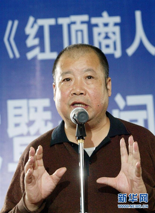 二月河在浙江杭州舉行的電視劇《紅頂商人胡雪巖》開機儀式上講話(2004年10月18日攝)。新華社發(fā)